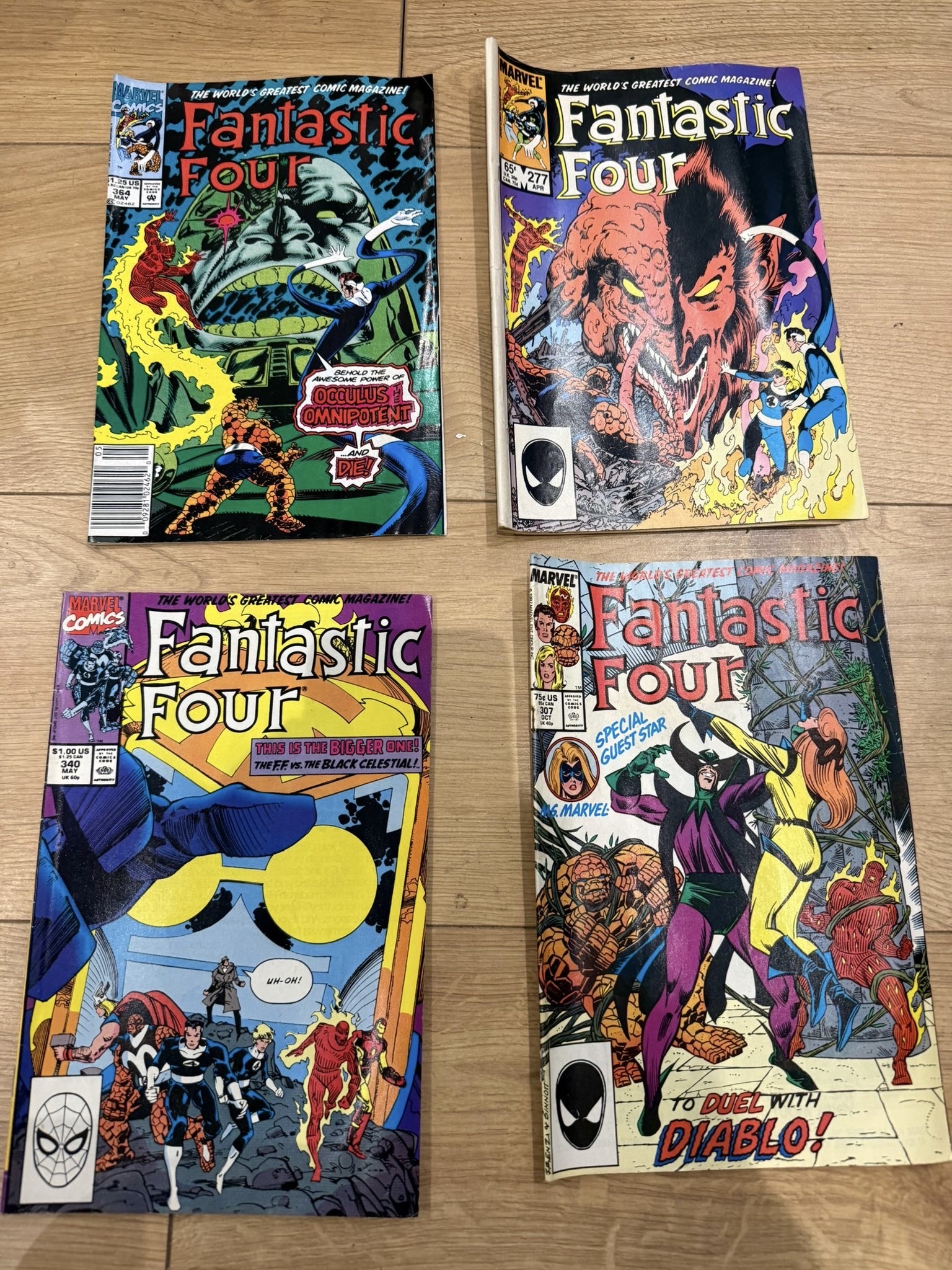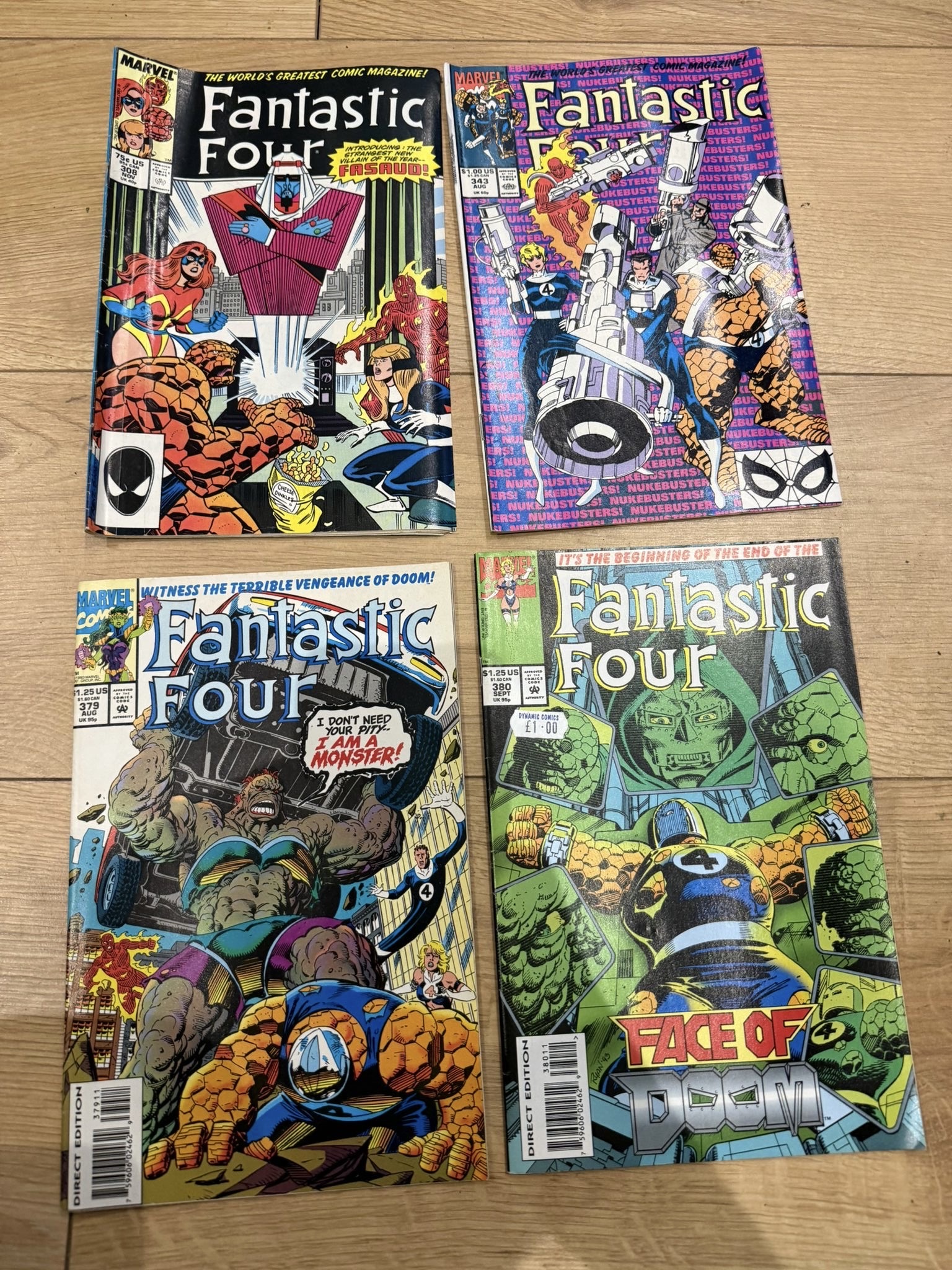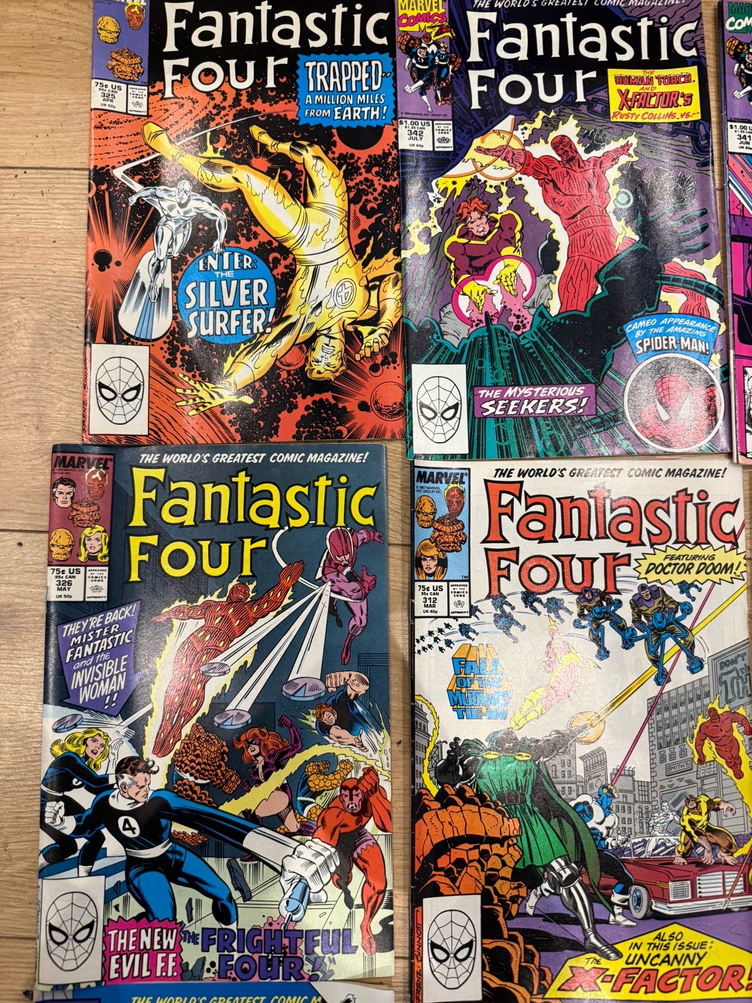 A collection of Marvel’s Fantastic Four comic book issues, primarily from the 1980s–early 1990s, featuring classic storylines and iconic villains from one of Marvel’s longest-running series.