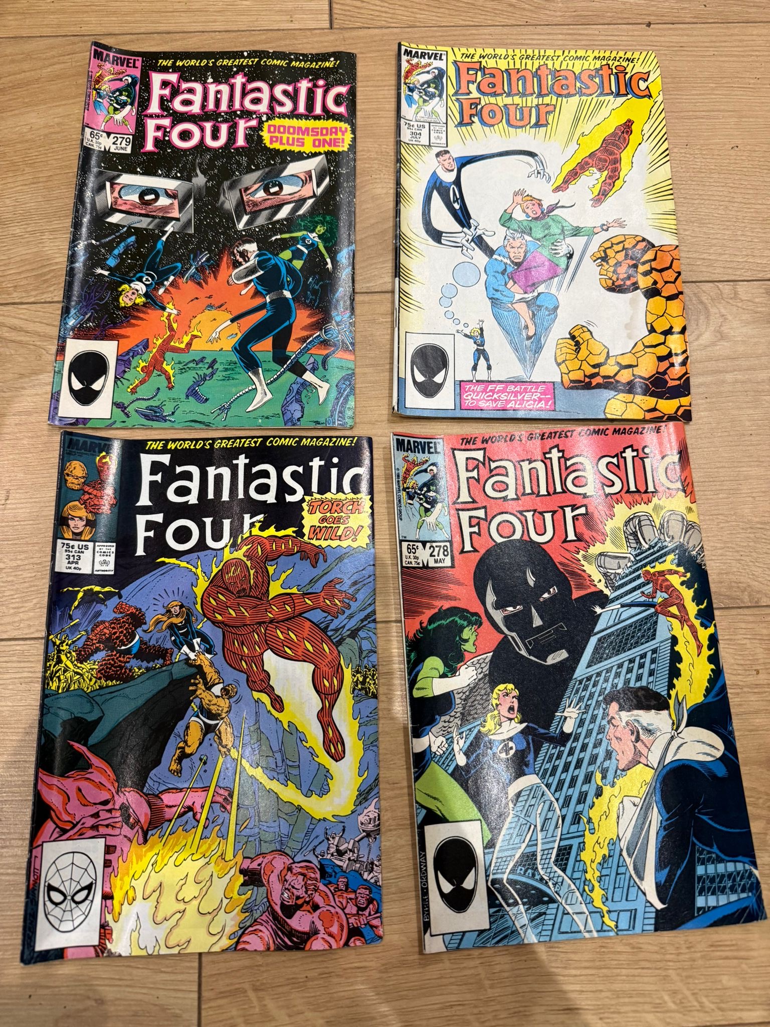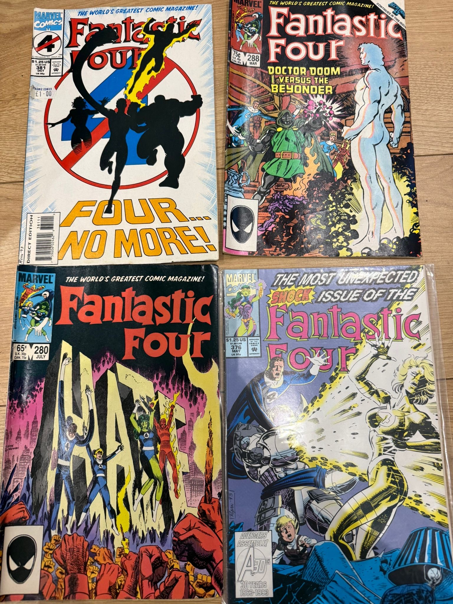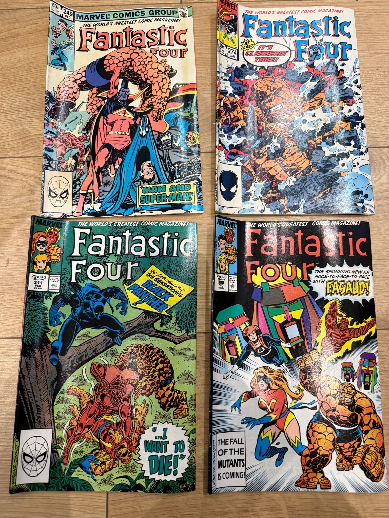 A collection of Marvel’s Fantastic Four comic book issues, primarily from the 1980s–early 1990s, featuring classic storylines and iconic villains from one of Marvel’s longest-running series.
