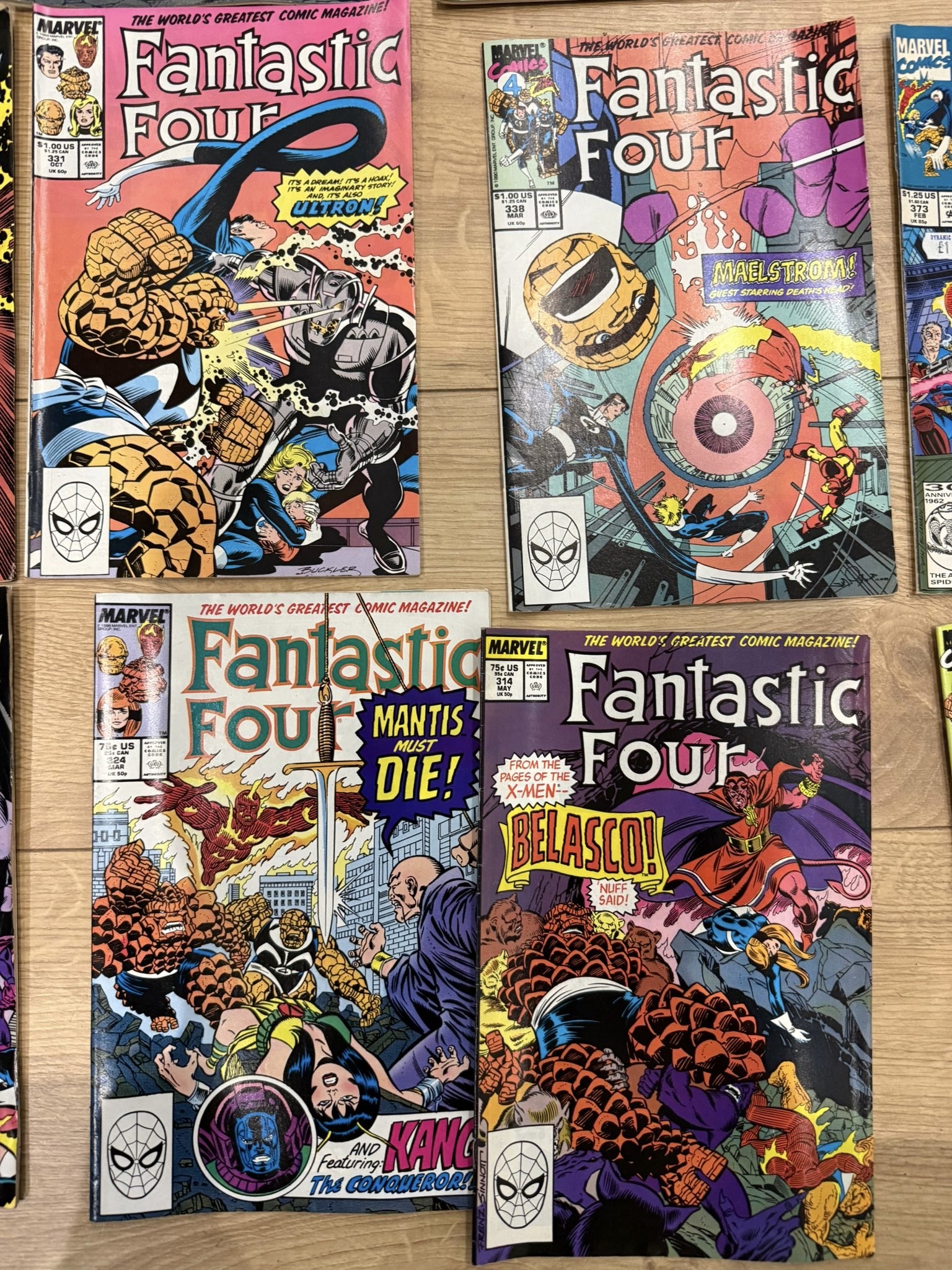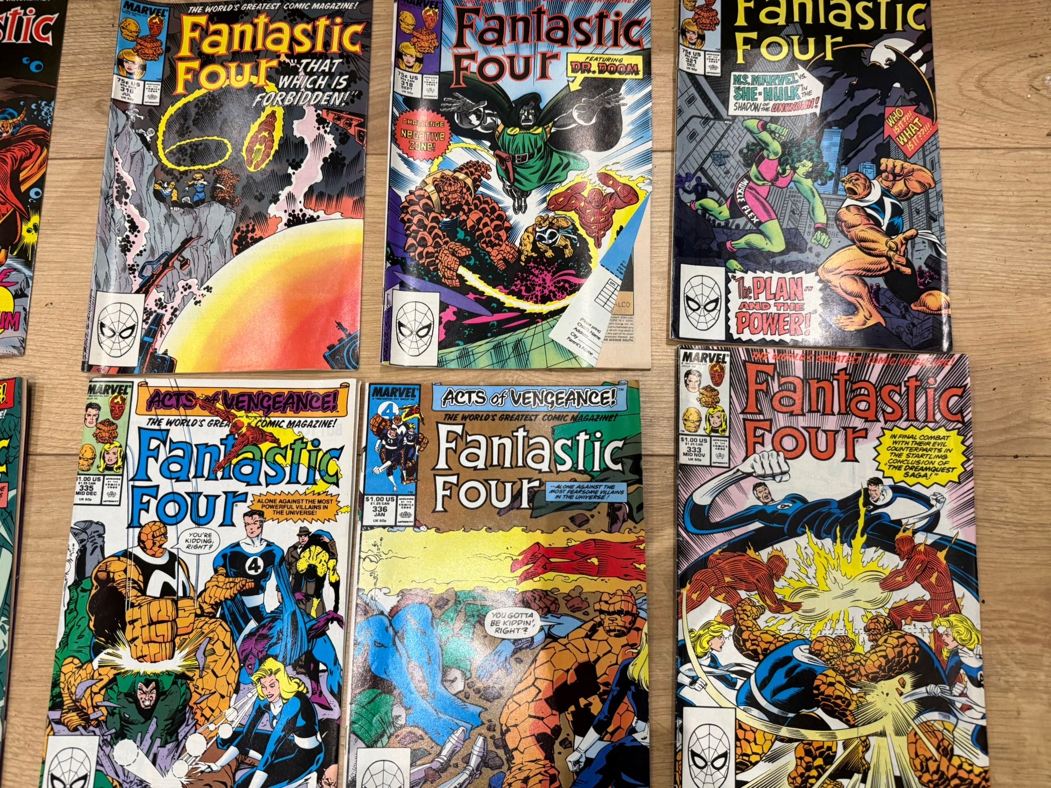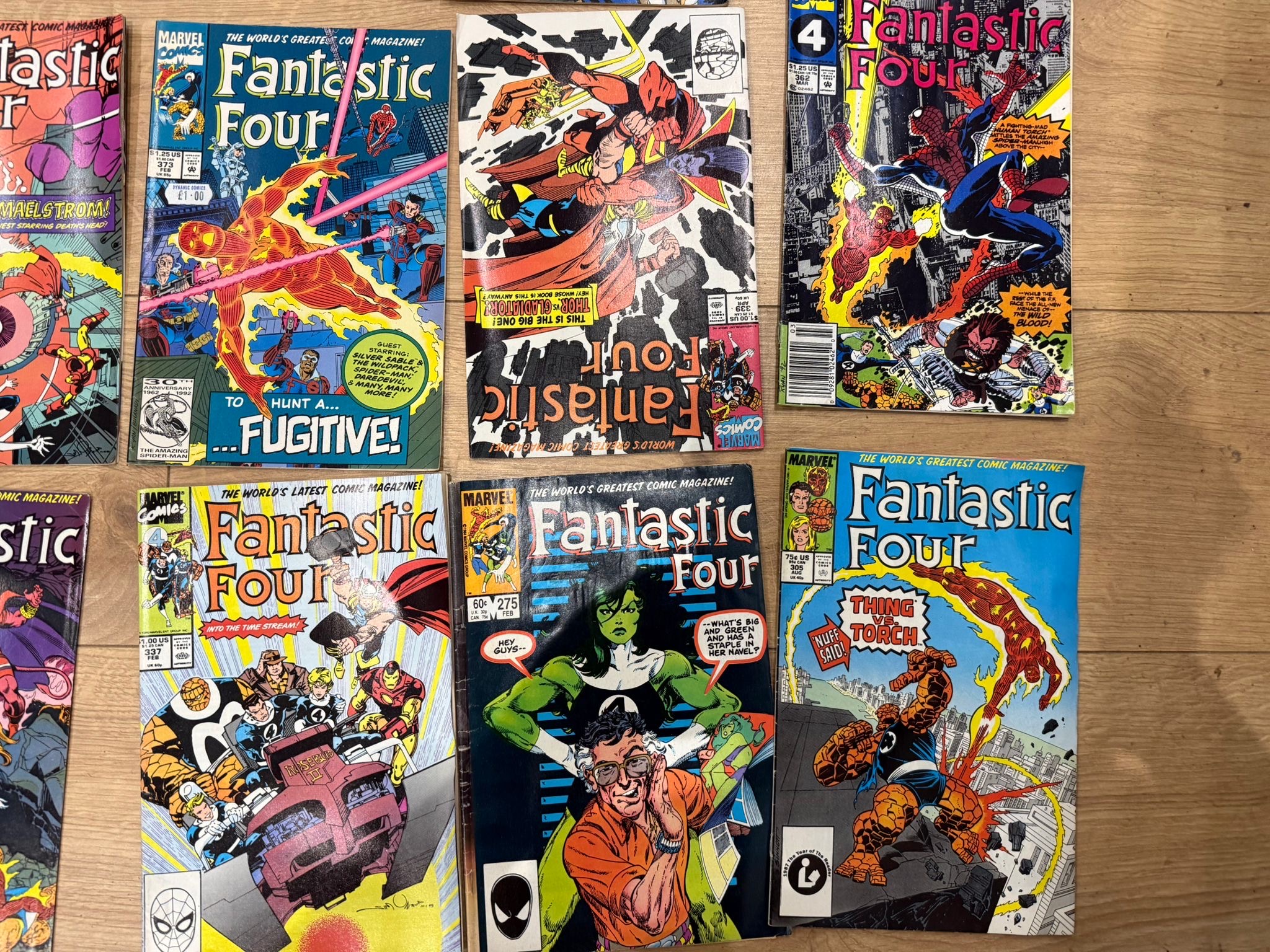 A large collection of Marvel Fantastic Four comic book issues, primarily from the 1980s–early 1990s, featuring classic storylines, iconic villains, and vibrant cover art from one of Marvel’s flagship series.