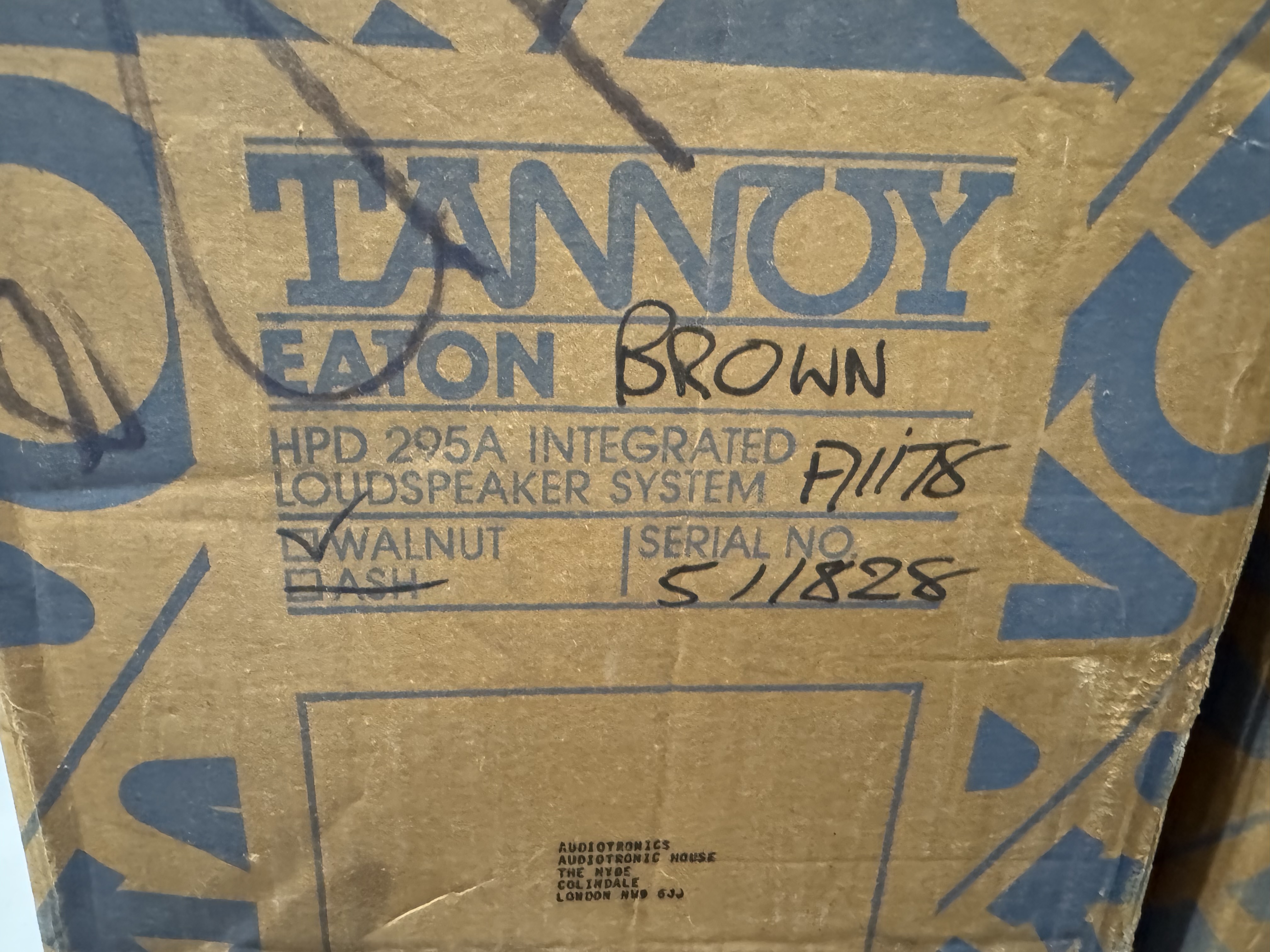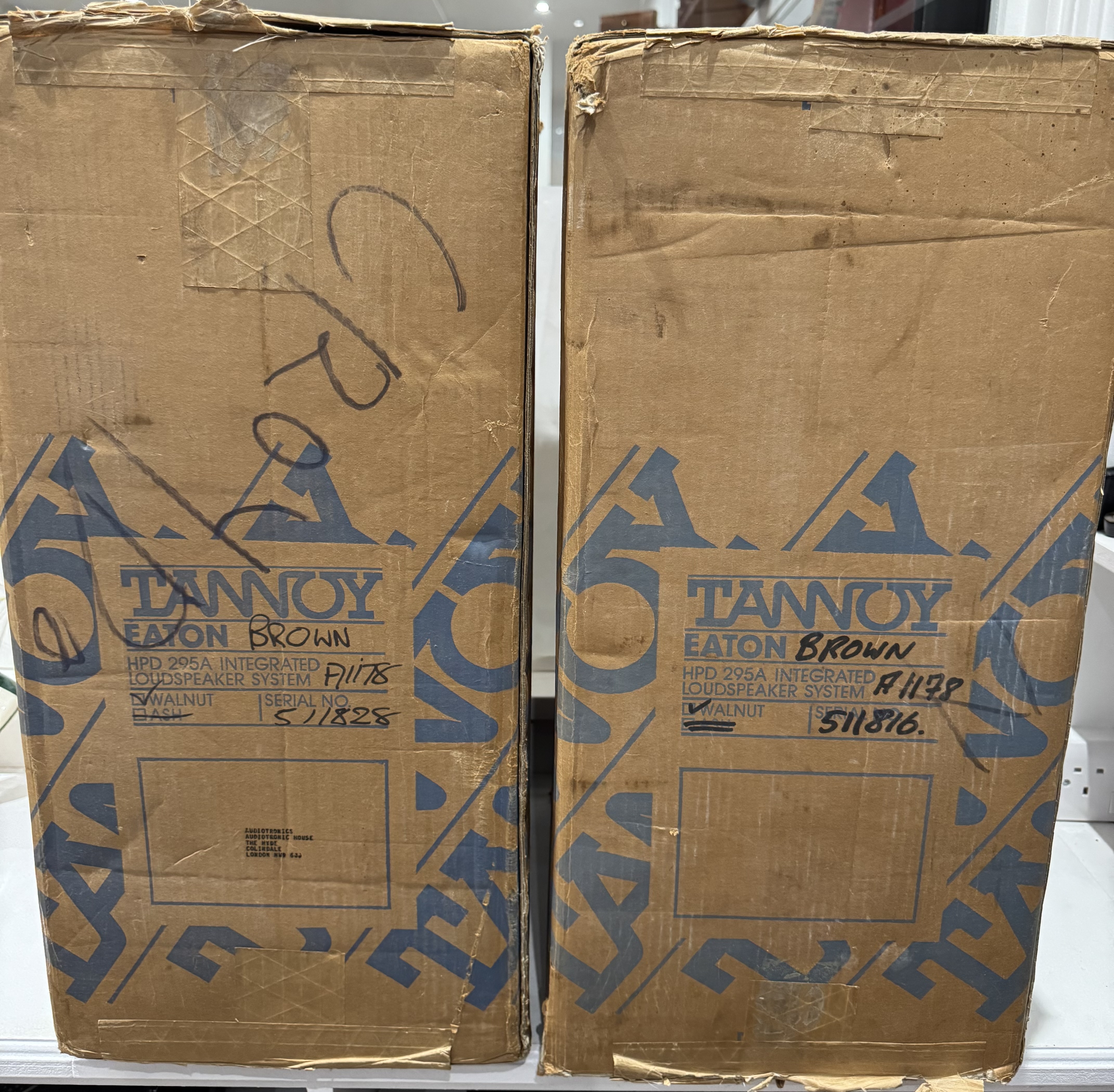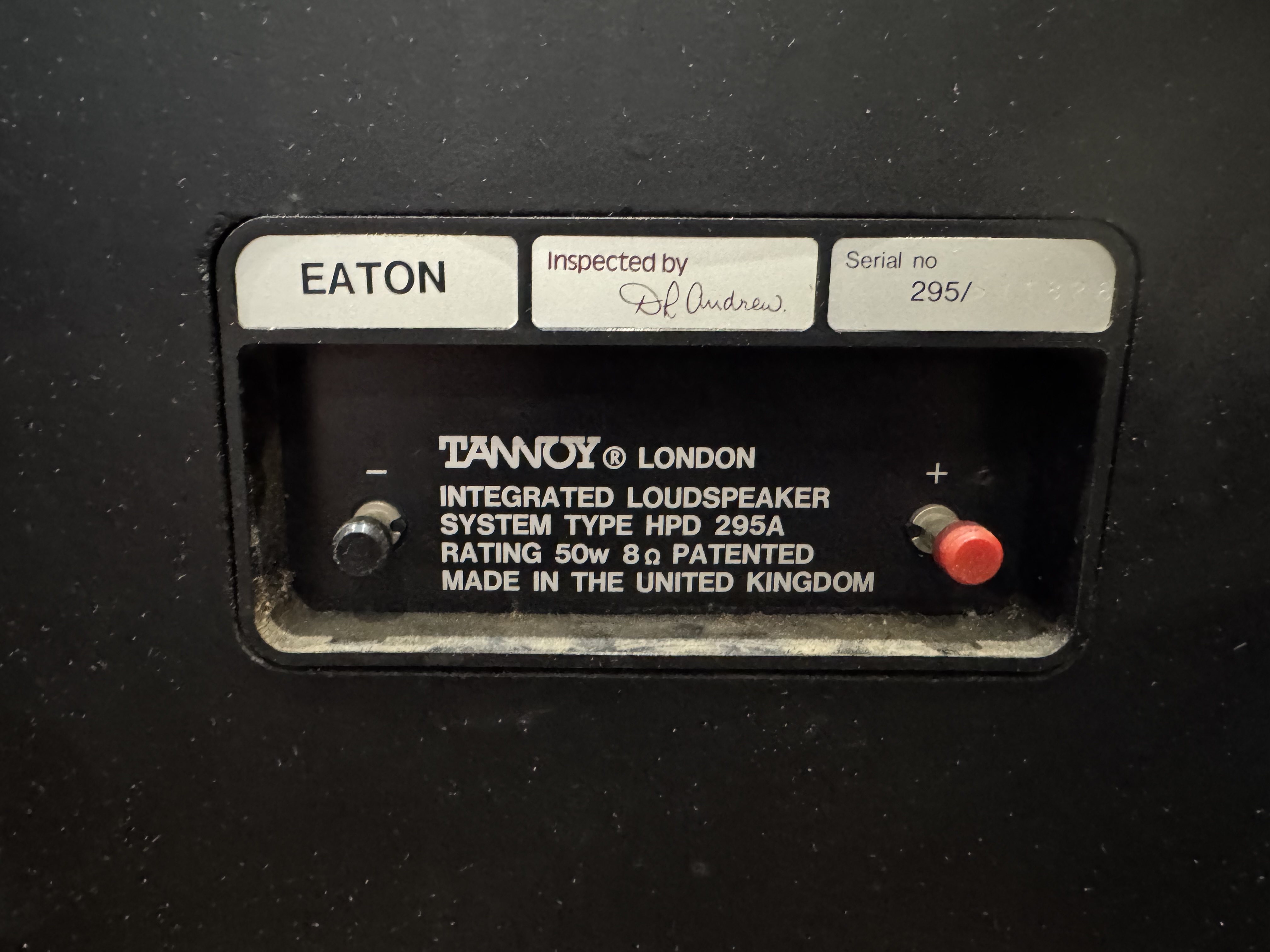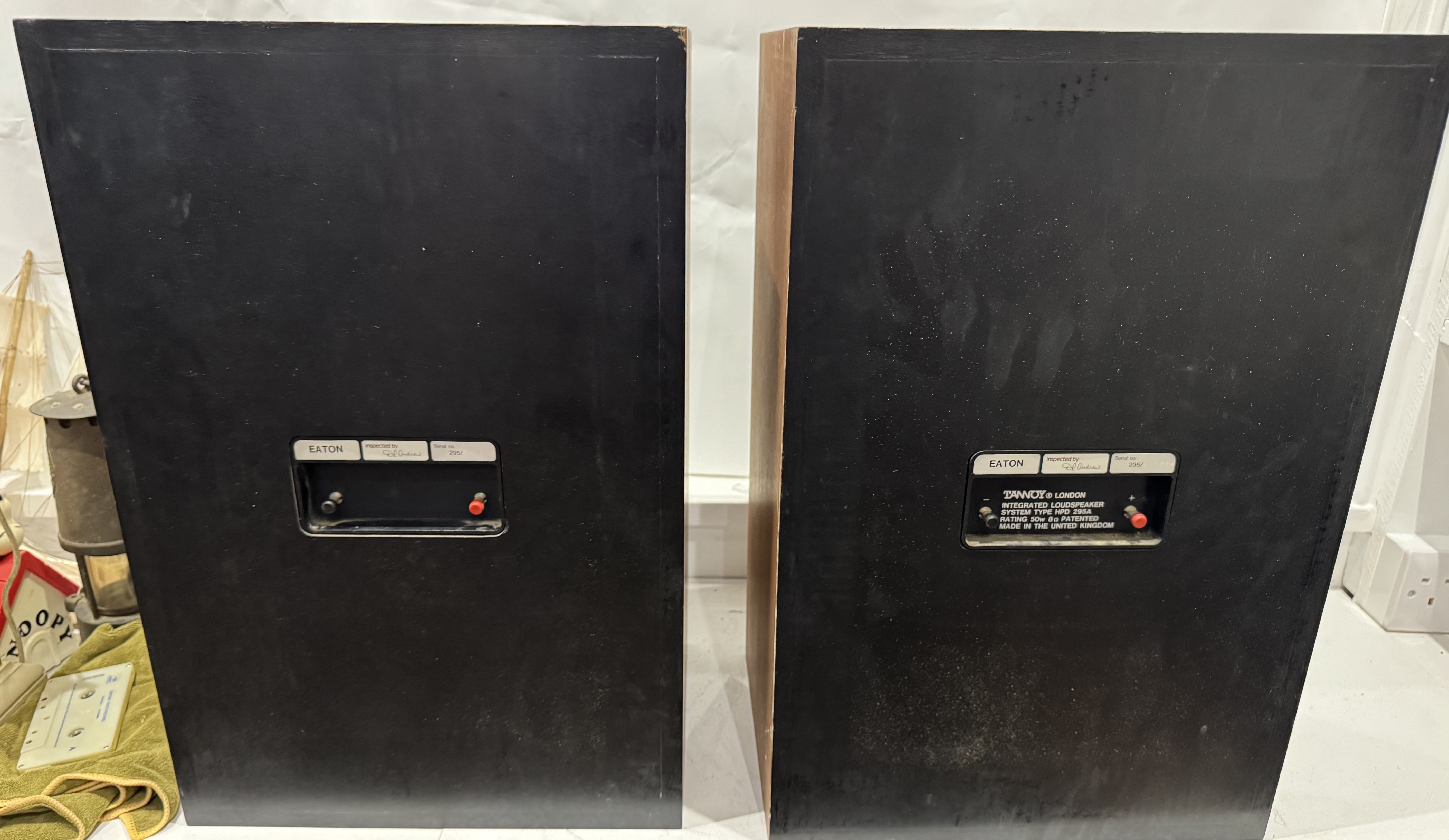 A highly regarded pair of Tannoy Eaton loudspeakers fitted with the legendary HPD 295A 12-inch Dual Concentric drivers. Made in the UK during the late 1970s ; One driver speaker not working properly only very low sound