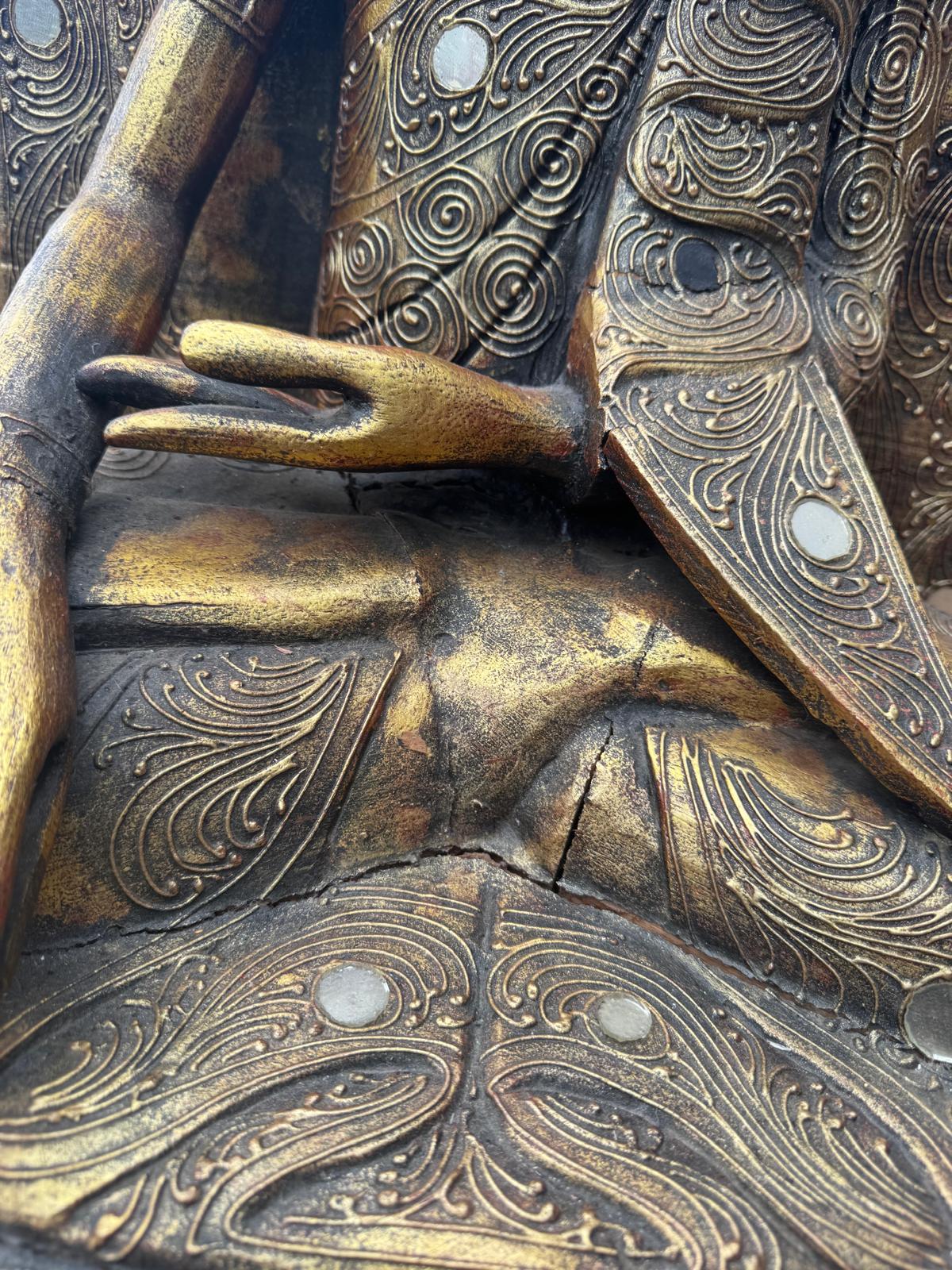Carved Wooden Buddha Statue on Plinth