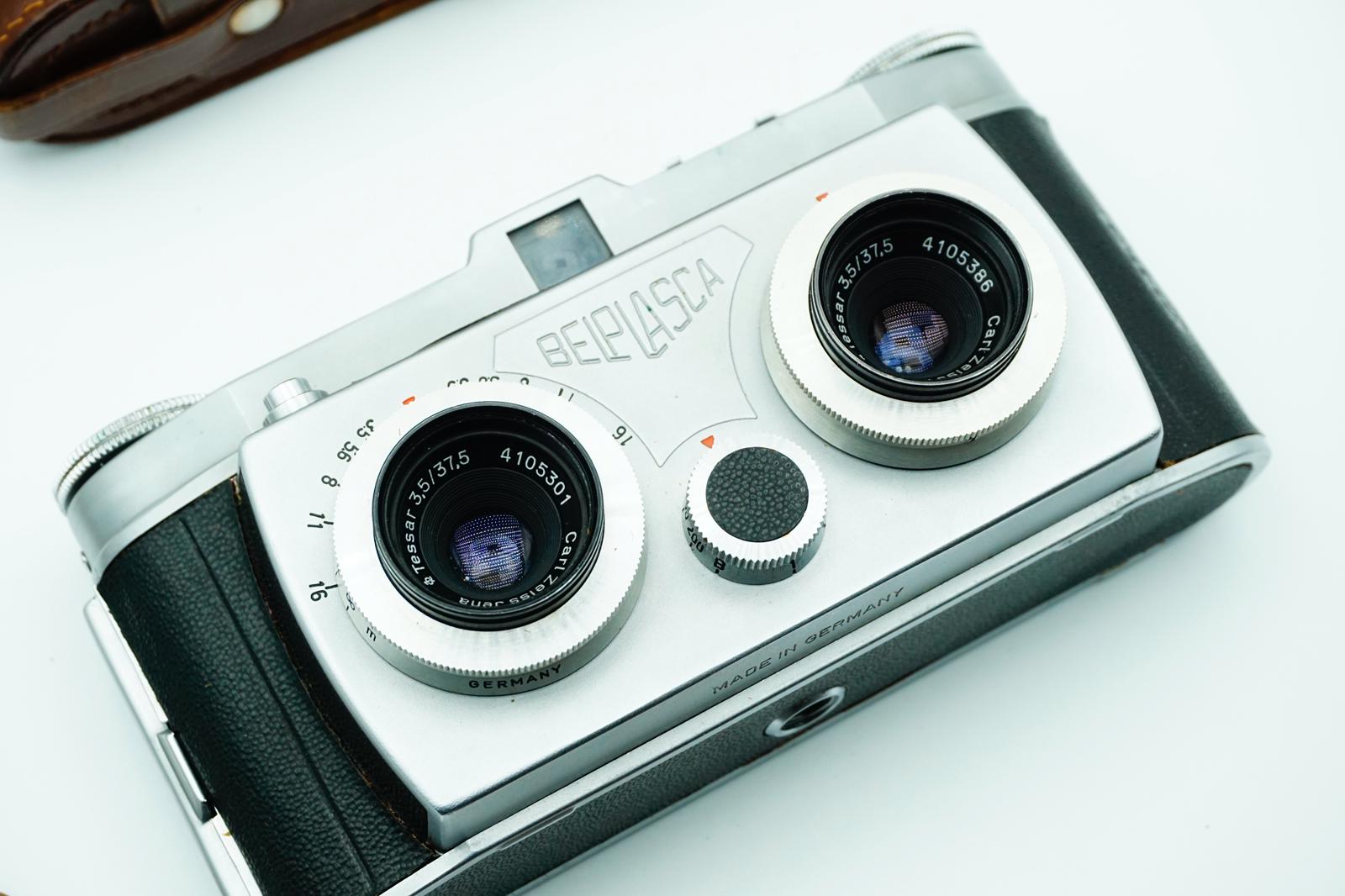a beautifully engineered and rare Swiss-made twin-lens camera designed to capture true stereoscopic photographs. Belplasca cameras are highly regarded among collectors for their precision construction, compact design, and genuine 3-D imaging capability.